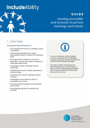 The IncludeAbility Guide provides practical advice for hosting in-person meetings and events that are welcoming to all participants.