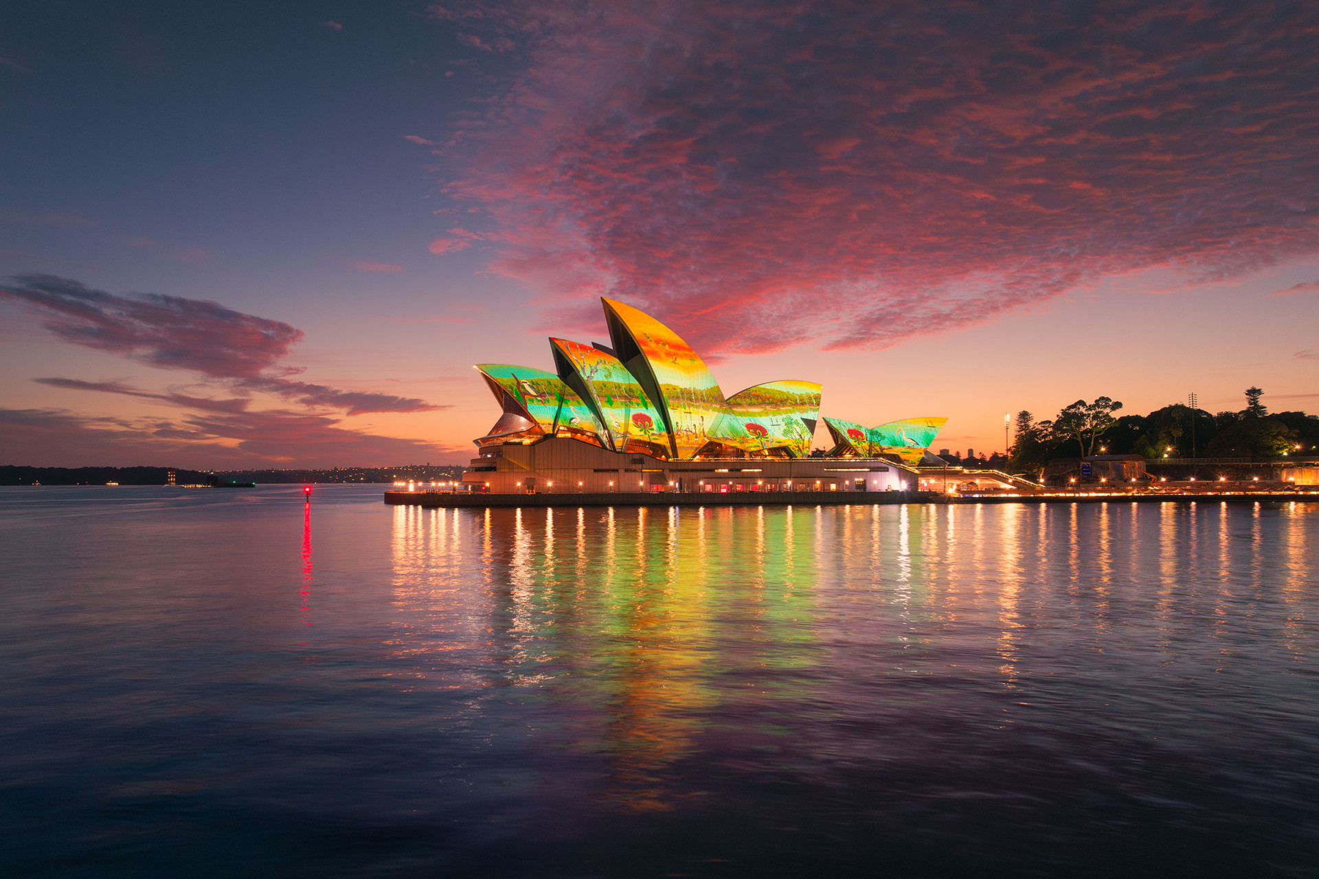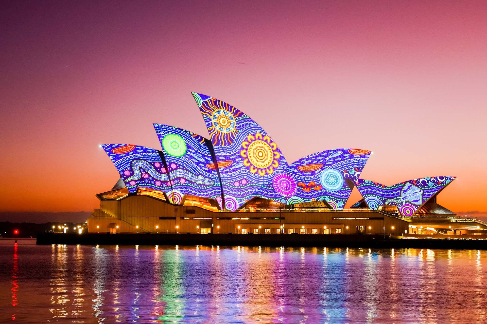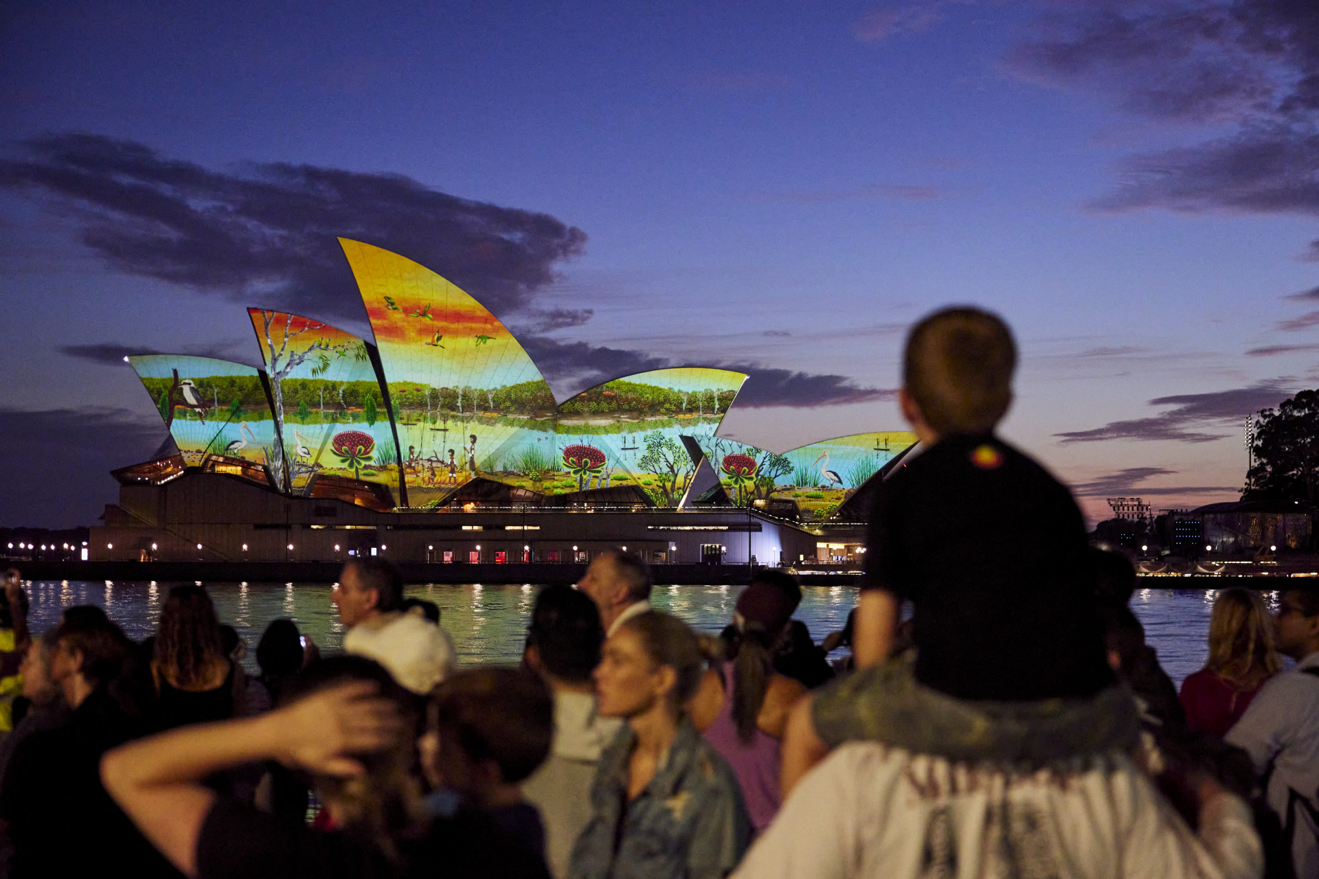Dawn Reflection 2022 saw renowned Pitjantjara artist David Miller’s work Ngintaka Tjukurrpa (perentie lizard Dreaming) being projected onto the sails of the Sydney Opera House.