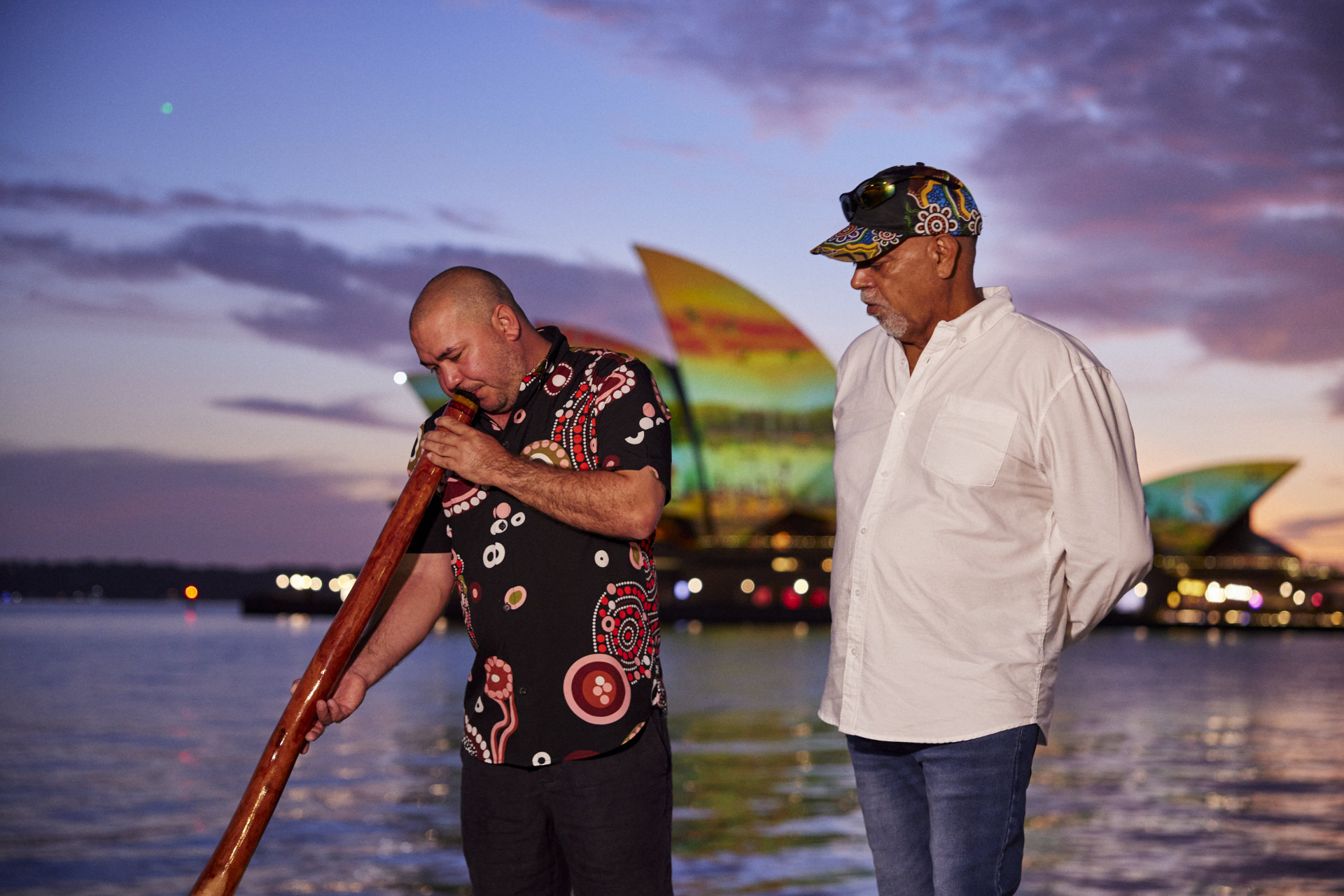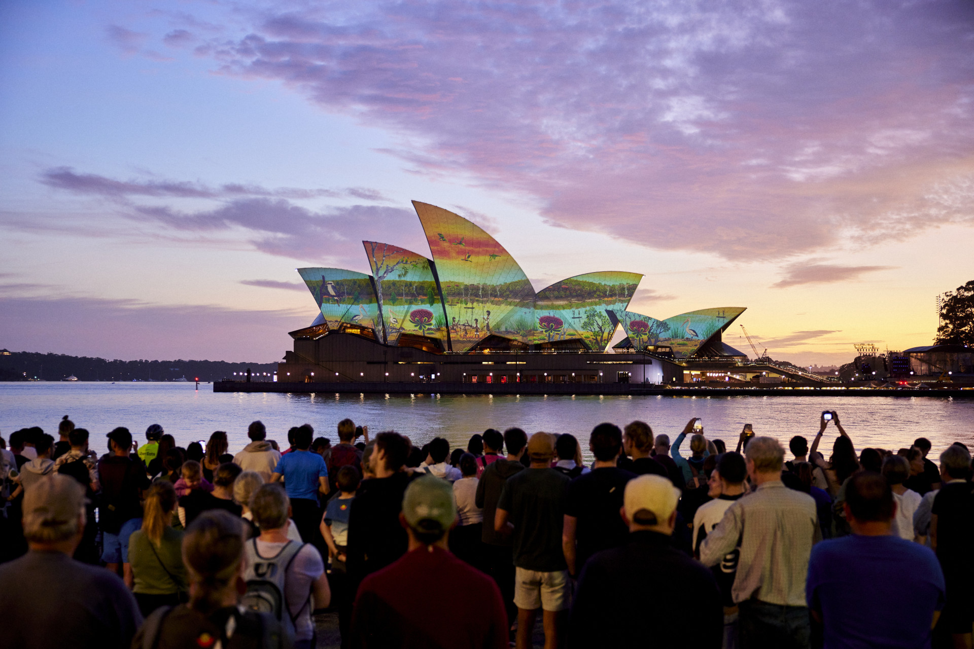 Proud Kamilaroi woman and artist Rhonda Sampson was commissioned to create Diyan Warrane for this year’s Dawn Reflection. Rhonda lives on Dharawal country in Western Sydney and joined us at dawn to see her work on the Opera House sails.