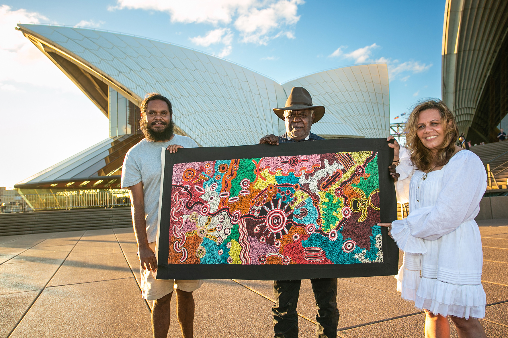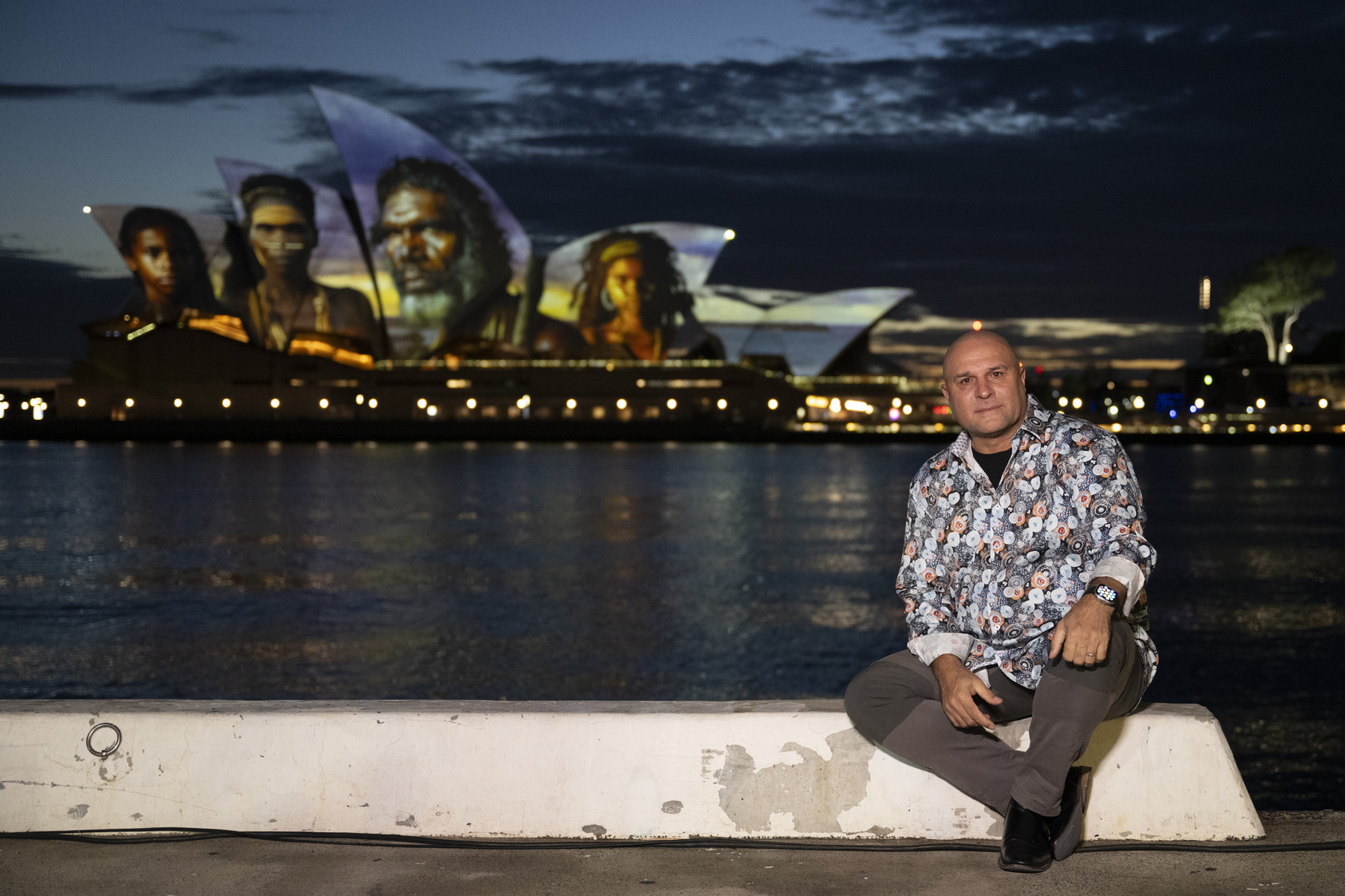 “The painting tells the story of my father’s country. I’m really pleased my father’s Dreaming [was] displayed on the Opera House. I’m from the centre of the country and we have a different view from people living in the city. We feel Australia Day is about coming together, sharing our stories as Indigenous people and keeping our culture strong.” David Miller